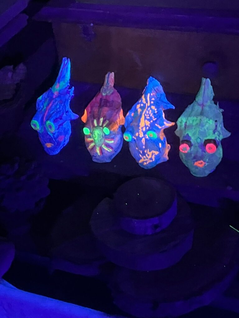 3D-Objekte in Schwarzlicht, entstanden 2025